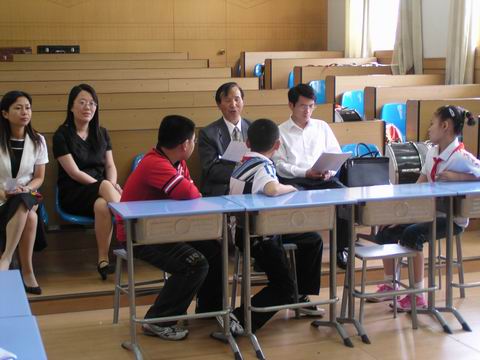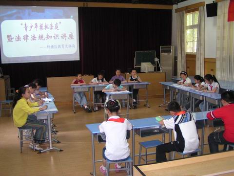 (5月21日常州晚报讯) 16日,花园小学的同学们向全区小学、幼儿园的校长、园长和书记们展示了一次青少年模拟法庭活动。让孩子们以扮演法官、律师、原告、被告的形式接触法律常识,是这个学校的一个特色,也是学校与社区进行协同教育的一个成果。花园新村二社区为孩子请来了退休法官张锁龙和董锁洪律师做指导老师,这样,孩子们演绎的模拟法庭十分“中规中矩”。(曹月红 陈征文摄)