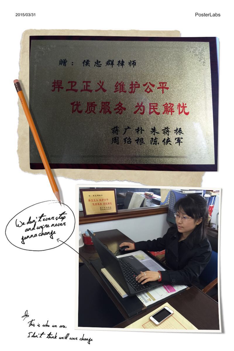 案后,不仅地方劳动所及劳动争议仲裁部门表扬侯忠群律师敬业、专业,蒋某等委托人还亲自为侯忠群律师送来了牌匾。