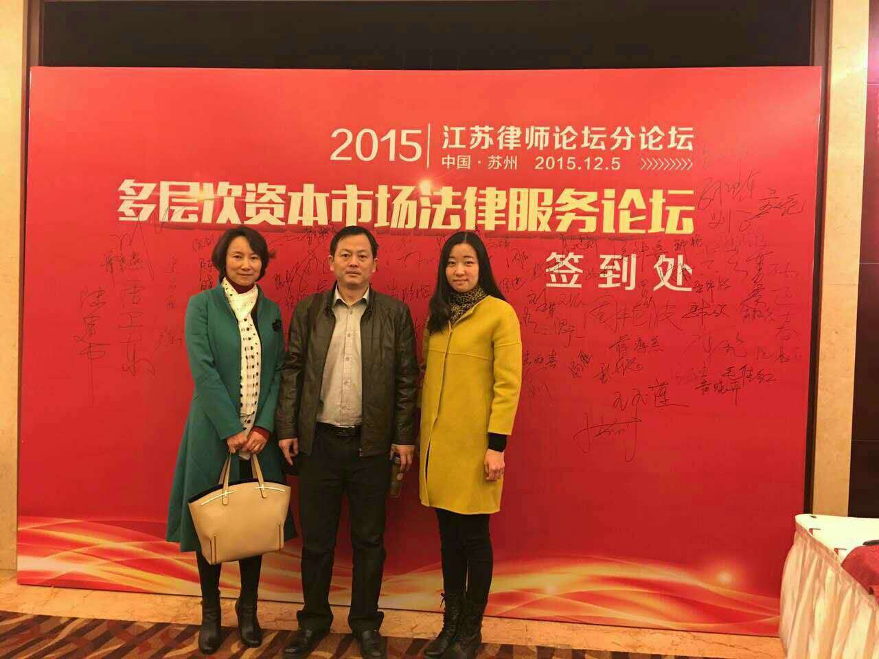 2015年12月5日,多层次资本市场法律服务论坛在苏州举行。我所毛佳红、王文纪、黄晓卉律师参加了本次论坛。