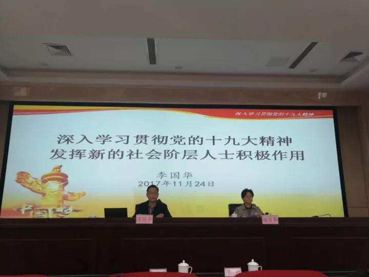 报告会由省委统战部副部长练月琴同志主持,省委十九大精神宣讲团专家、省委统战部副部长李国华同志作了题为《深入学习贯彻党的十九大精神发挥新的社会阶层人士积极作用》的报告。